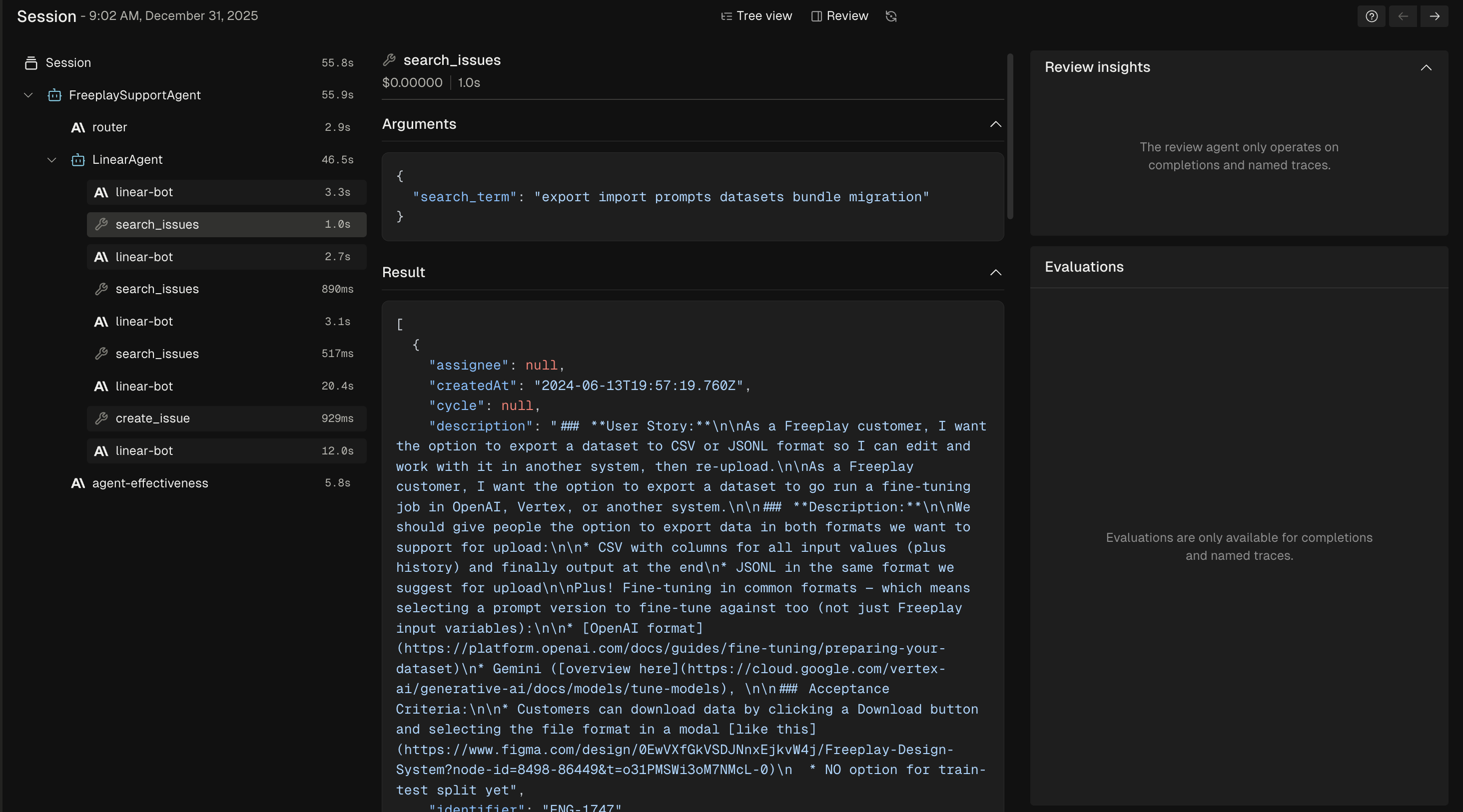 You can use the Freeplay SDK to fetch the tool schema as part of prompt retrieval and automatically format it for your LLM provider.Logging Tool Calls to Freeplay